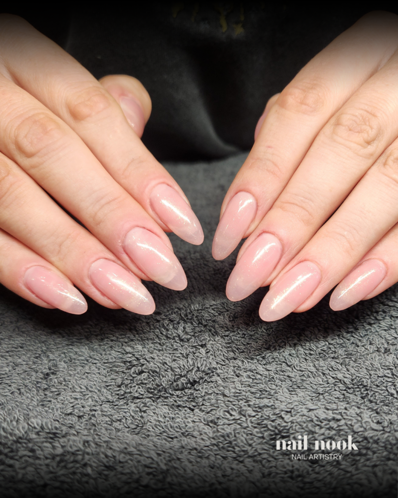 (soft gel extention, pre shaped and applied with gel. Infilled with BIAB)